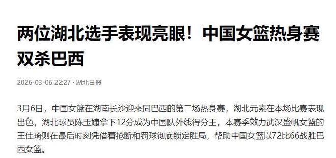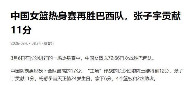 再次战胜巴西队,也说明了中国女篮的实力是毋容置疑的。